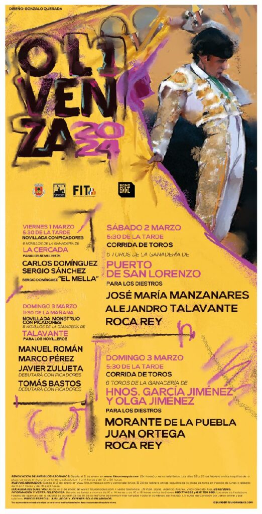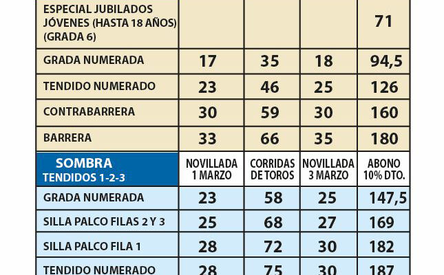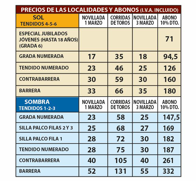 Desde el 2 de enero en www.fitauromaquia.com y en los teléfonos: 689 774 825 y 659 720 888. El 24 de febrero en las taquillas de la plaza de toros en horario de lunes a sábado de 11 a 14 horas y de 16 a 20 horas.